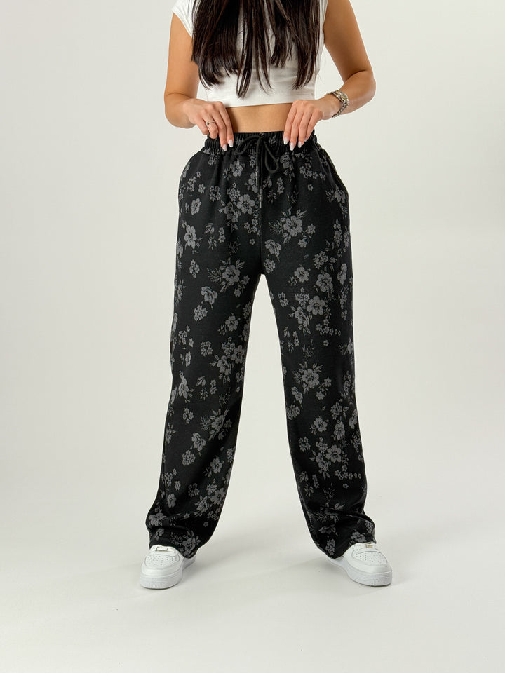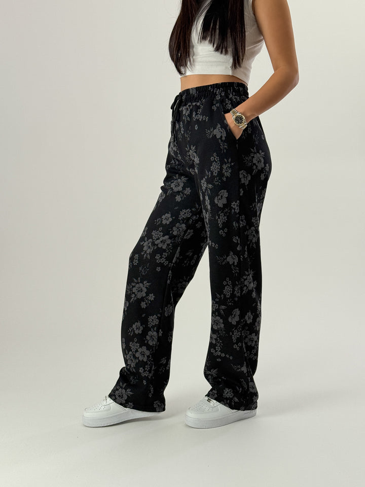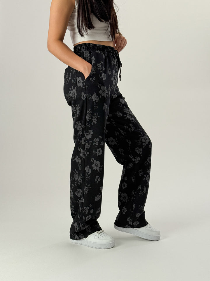 Tasarım Çiçek Baskı Kadın Baggy Pantolon