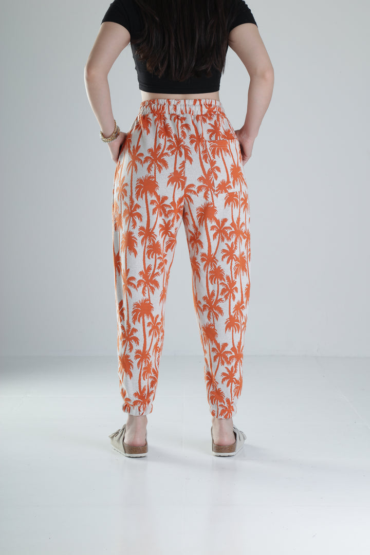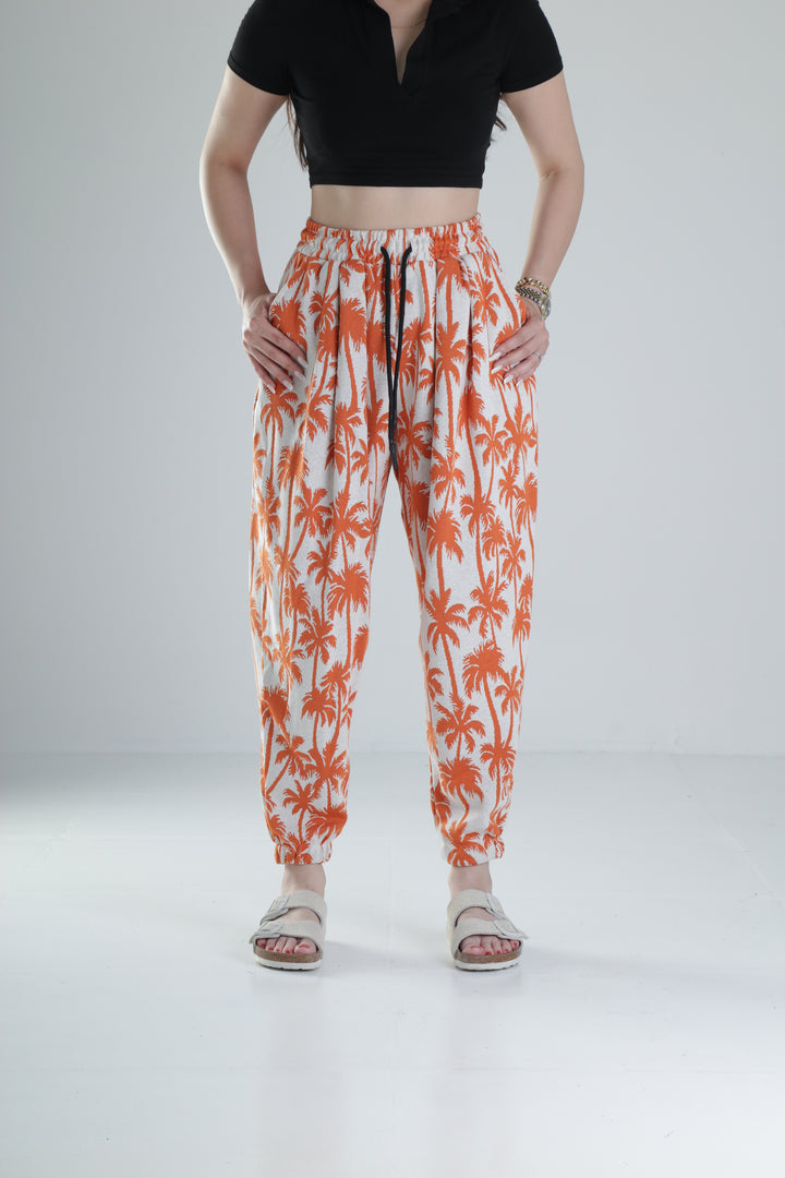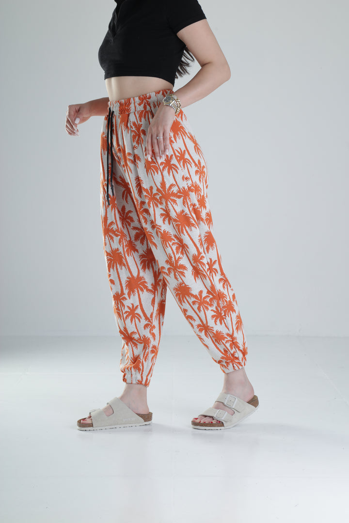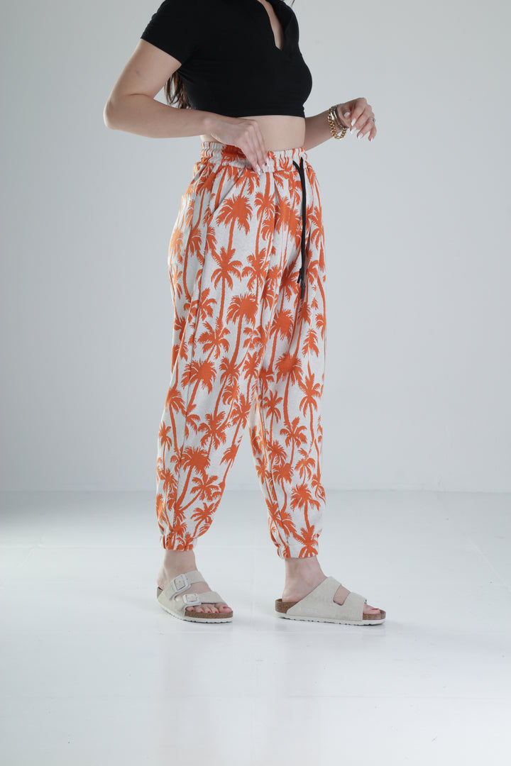 Turuncu Palmiye Desenli Pileli Jogger COC1322