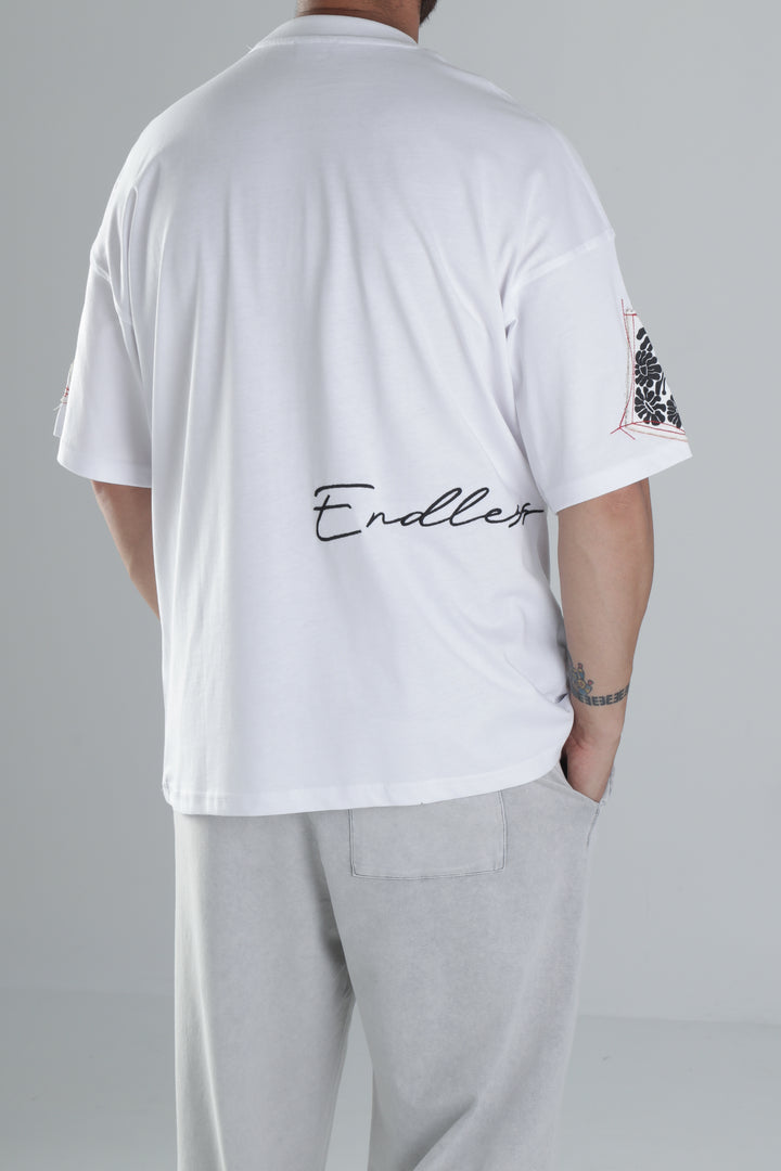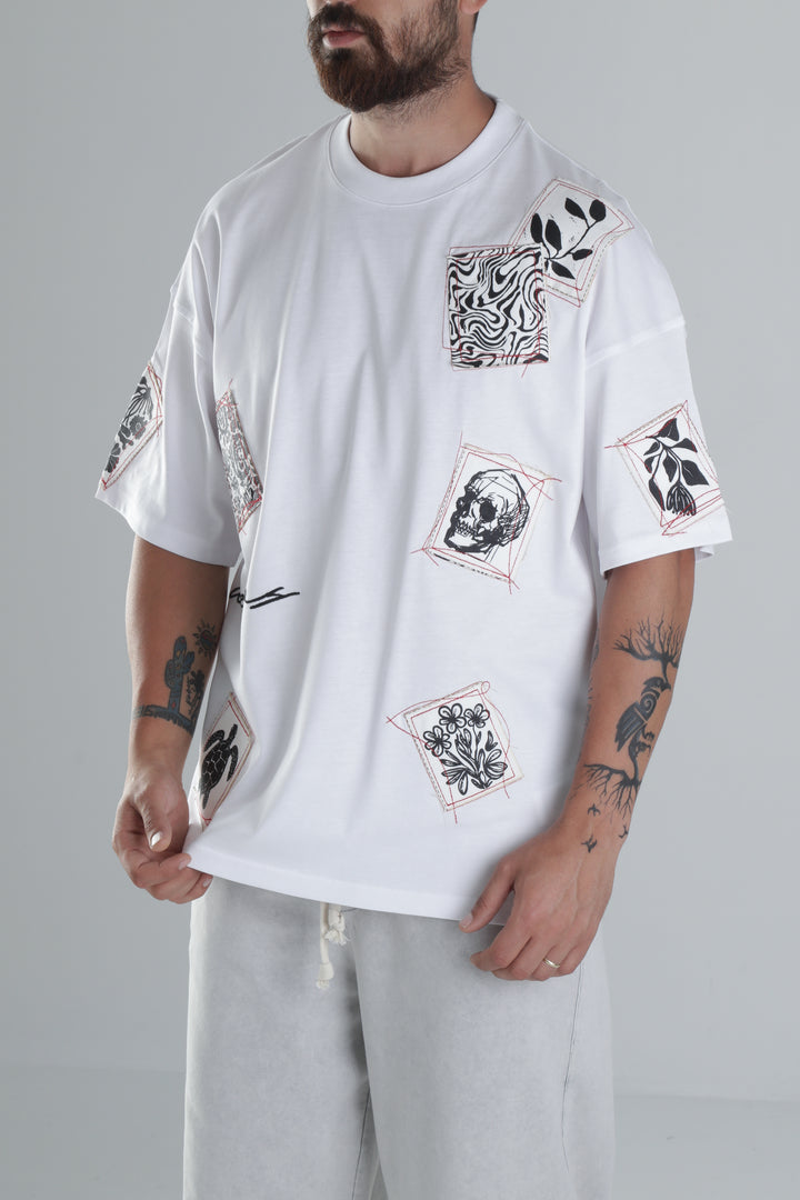Yama Desenli Beyaz Tasarım T-Shirt COC1301