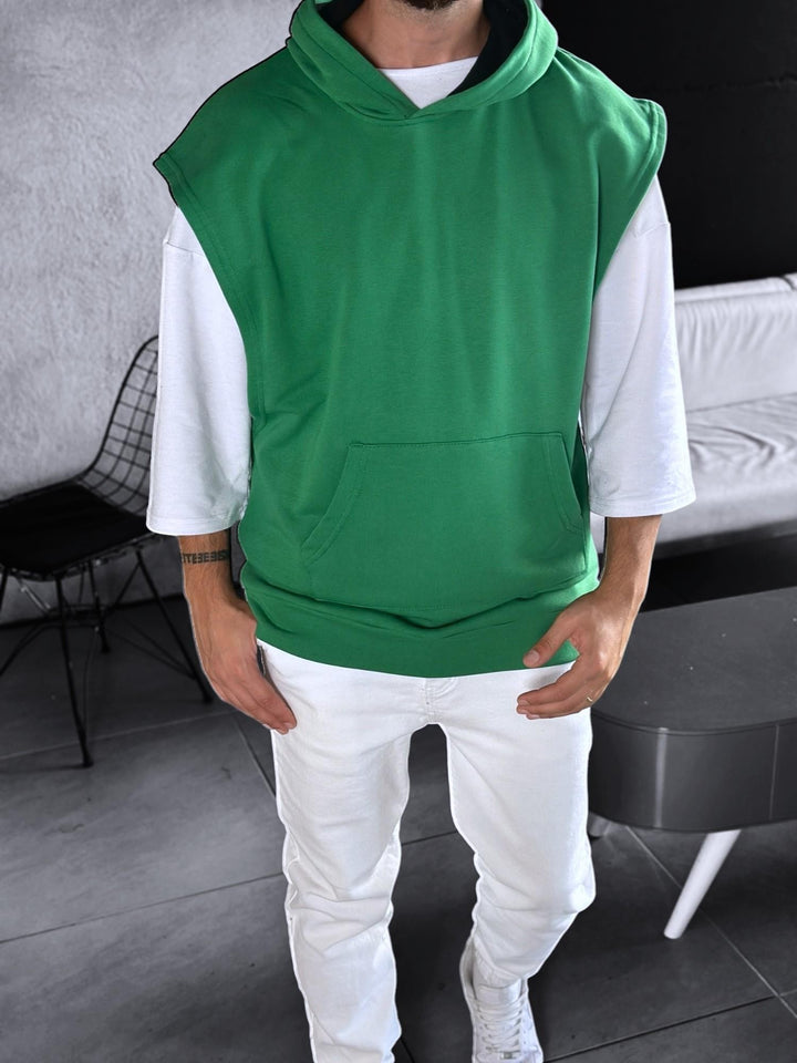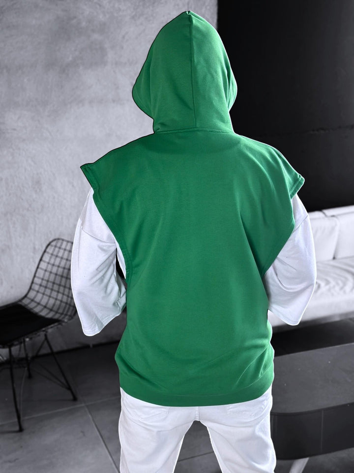 Yeşil Kapüşonlu Sıfır Kol Hoodie COC1850
