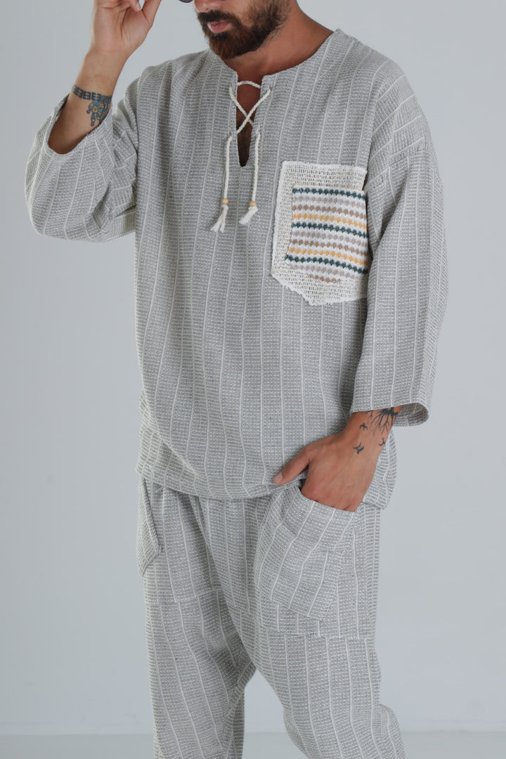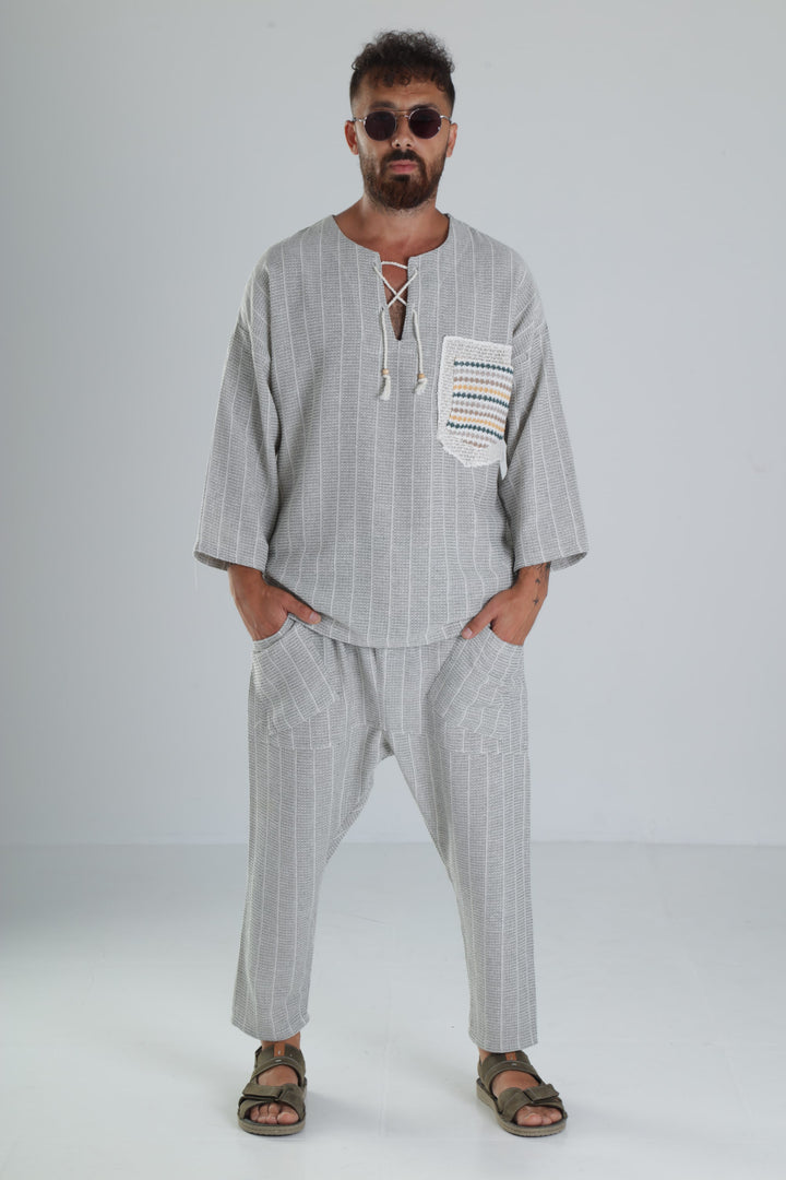 Yeşil Keten Pamuk Tasarım Şalvar Takım