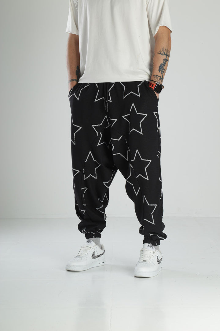 Yıldız Desenli Siyah Spor Şalvar COC1870